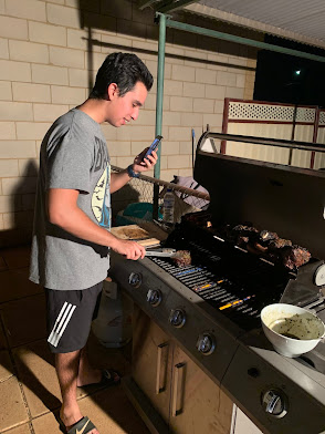Aussies love their barbeques! Throwing some shrimp on the Barbie is a real thing & taken seriously. No ham dinner for Easter in Kalgoorlie! Here's our friend Robert Riquelme cooking up beef ribs, pork chops & sausages soaked in his mom's fabulous Chilean marinade for Easter Sunday dinner. We contributed fish tacos to the gourmet meal & had a fantastic time!